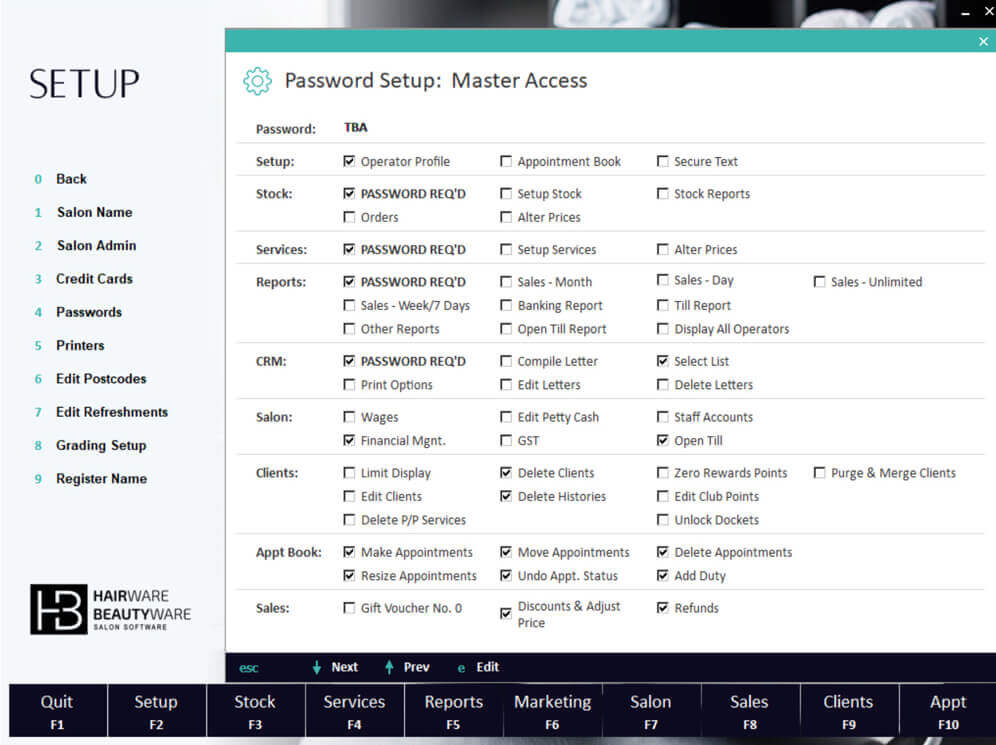 Almost all modules of our program can be secured with either a password or PIN number, which can be customised for each individual team member, ensuring that everyone has just the right level of access.